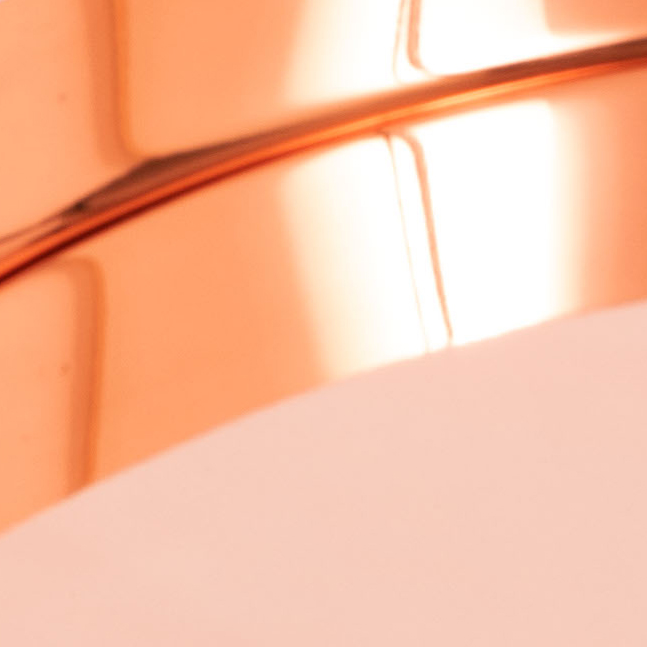 The Off the Moon tray is made of brass with a polished pink copper finish.
